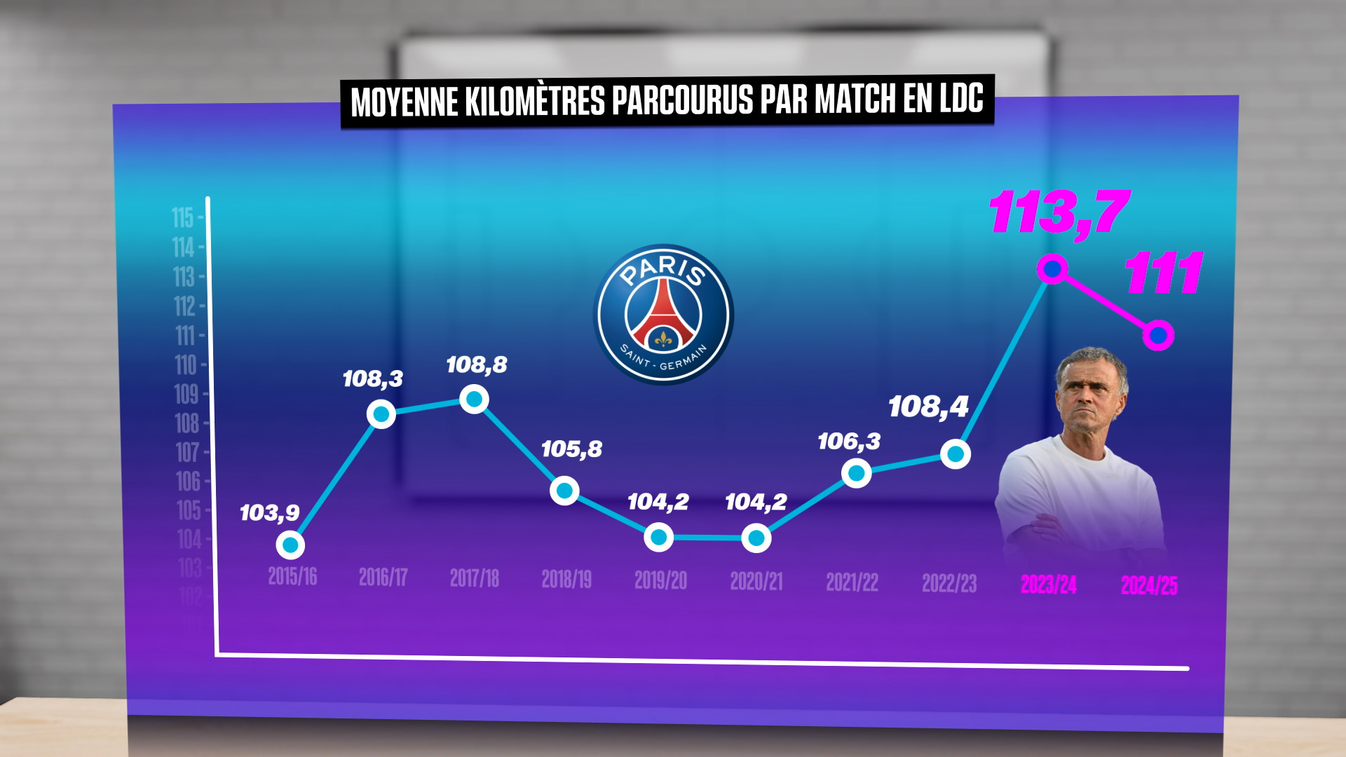 vidéo pour l'emission canal foot manager, Présentant en chiffres les succès de l'entraîneur luis enrique.